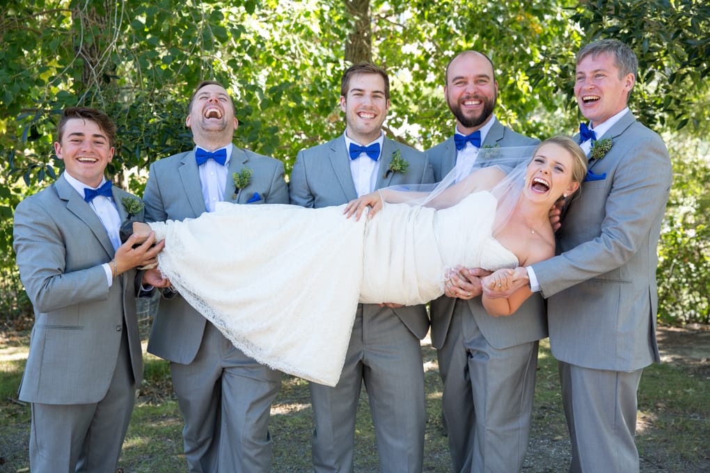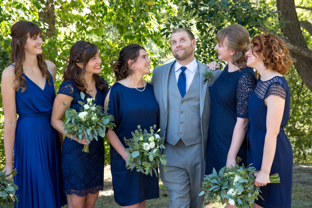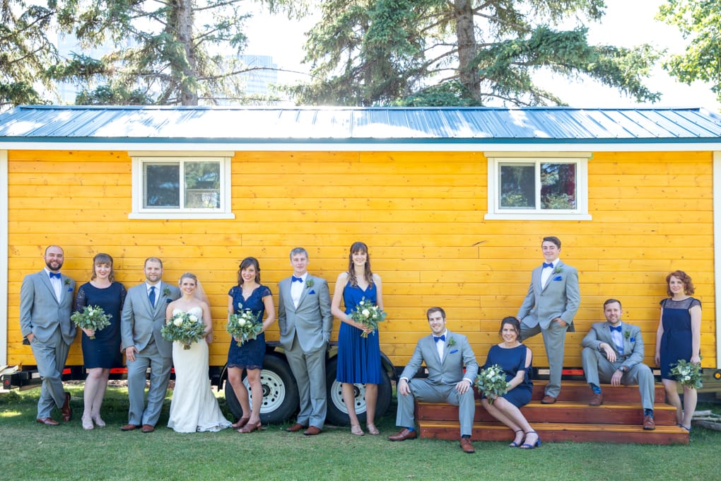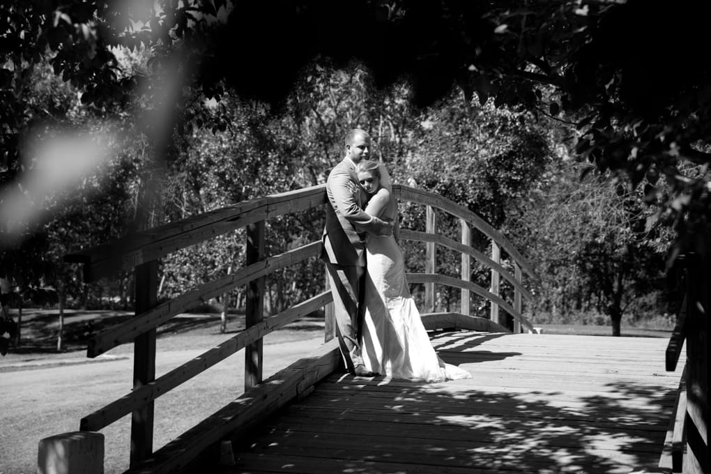The wedding party then wandered their way through Calgary’s Prince’s Island Park for some amazing photo ops with everyone jumping into the shade whenever possible to cool down, the sun was definitely out for the day.